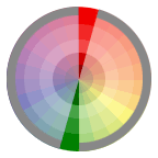 - Utiliza el círculo cromático superior para encontrar el color complementario al color verde, que será el que está opuesto en el círculo. En este caso es el rojo.