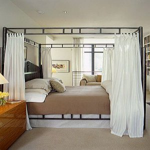 La estructura de la cama también puede ser una alternativa. La utilización de cortinas y arreglos de finas telas deja una sensación las películas románticas de antaño, aunque el estilo contemporáneo también queda muy bonito.