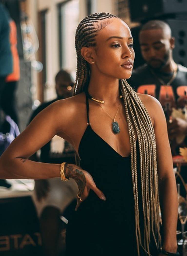 Las trenzas francesas en la parte trasera del peinado están de moda.